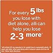 Alli sumažina maistinius riebalus 25% ir taip sumažina suvartojamų kalorijų skaičių. Nustatyta, kad jis yra tik kukliai efektyvus. Tikėkitės numesti apie 3–5 svarus kiekvienais metais daugiau nei numestumėte tik dietos ir fizinio krūvio metu.